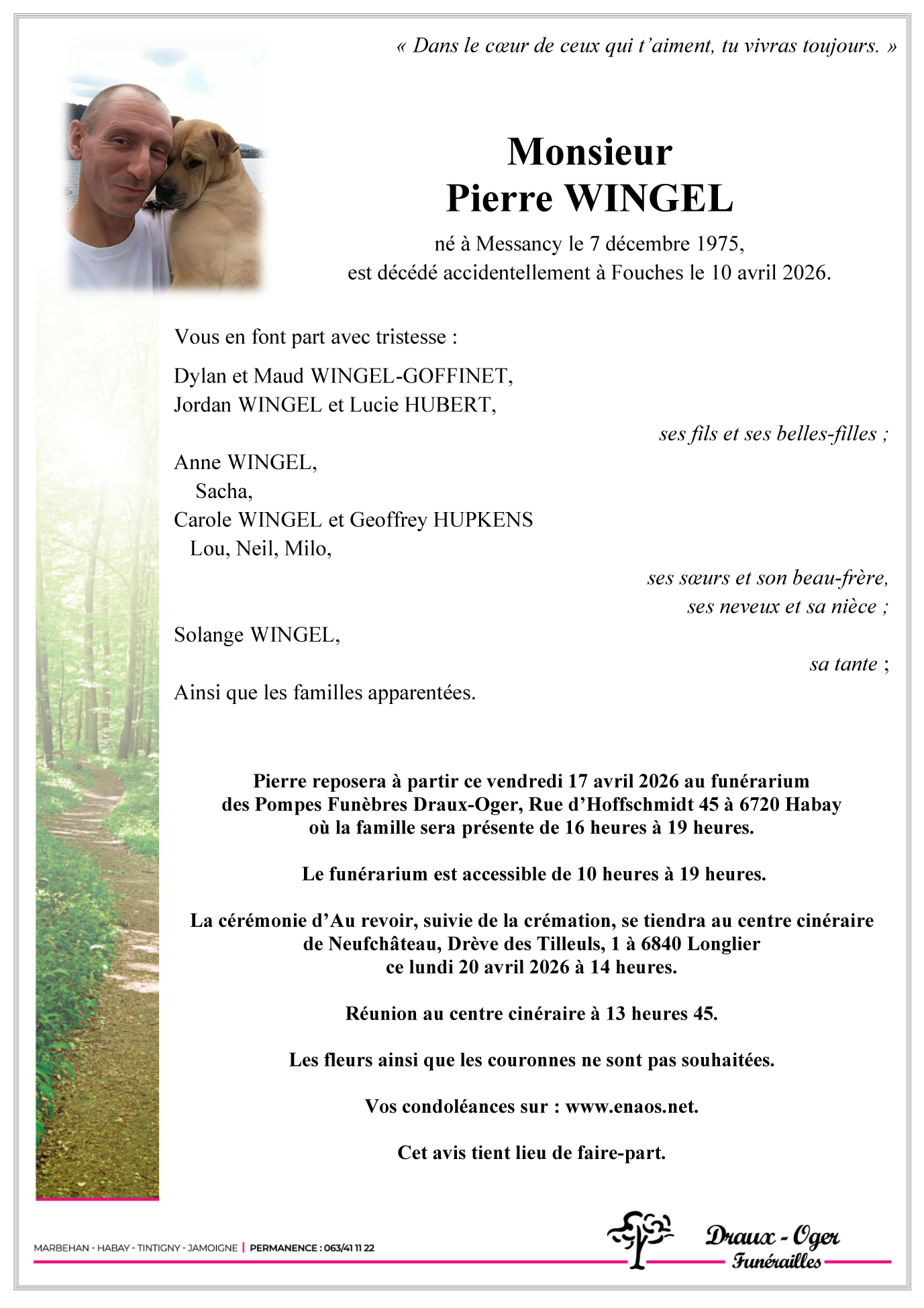 Centre cinéraire de Longlier de Longlier le lundi 20 avril