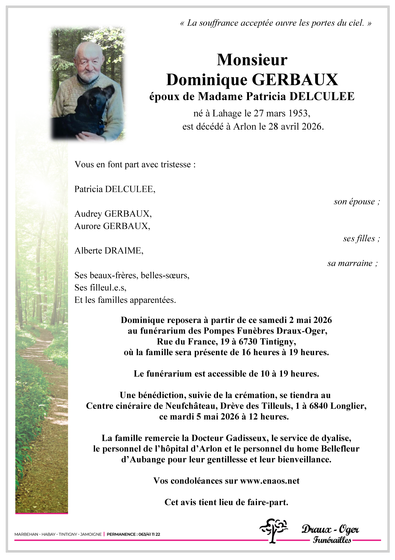 Centre cinéraire de Longlier (Neufchâteau) le mardi 5 mai