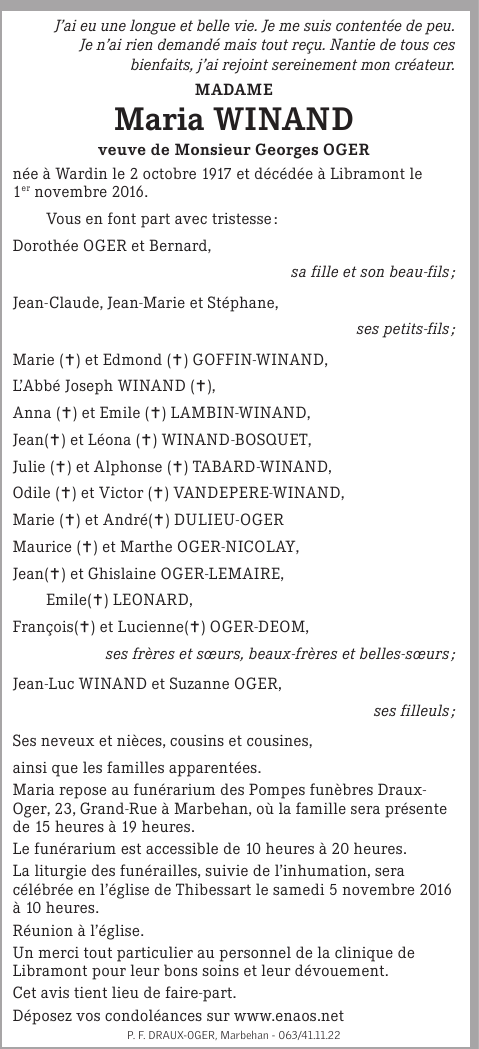 le mardi 1 novembre 2016 à l'âge de 99 ans