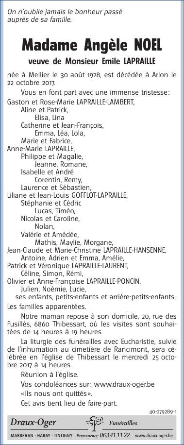 Funérailles Draux - Oger