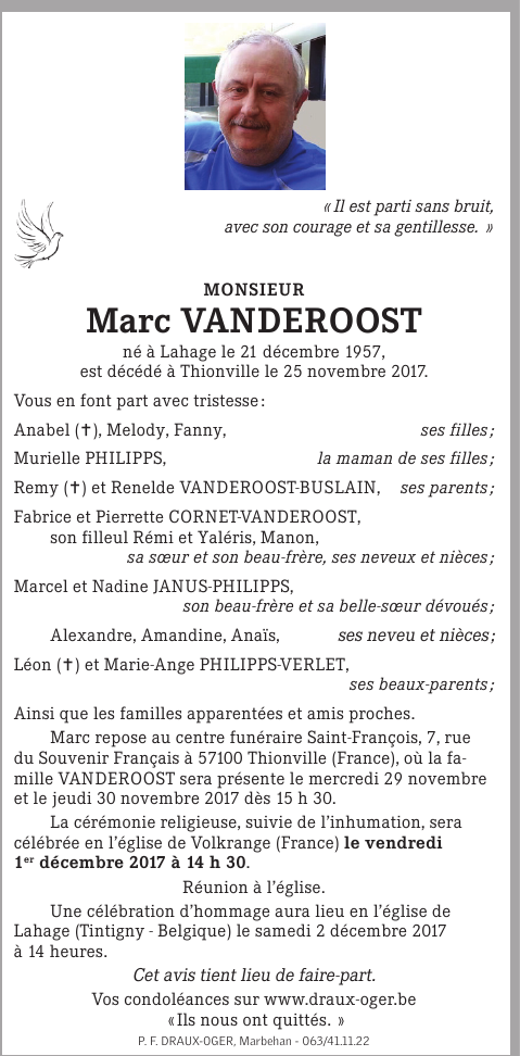 le samedi 25 novembre 2017 à l'âge de 59 ans