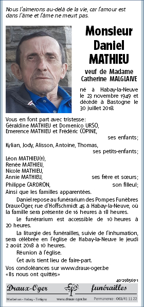 Décédé à Bastogne (6600) le lundi 30 juillet 2018 à l'âge de 68 ans