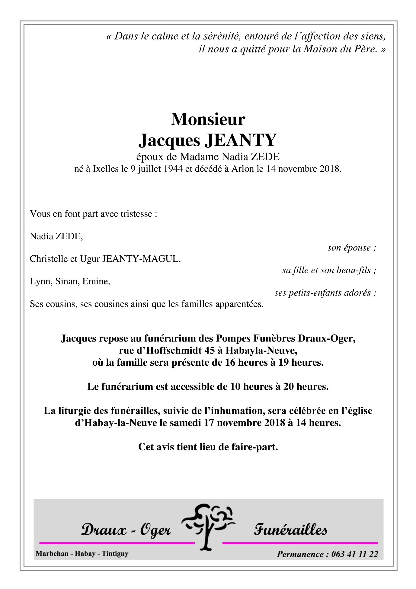 Funérailles Draux - Oger
