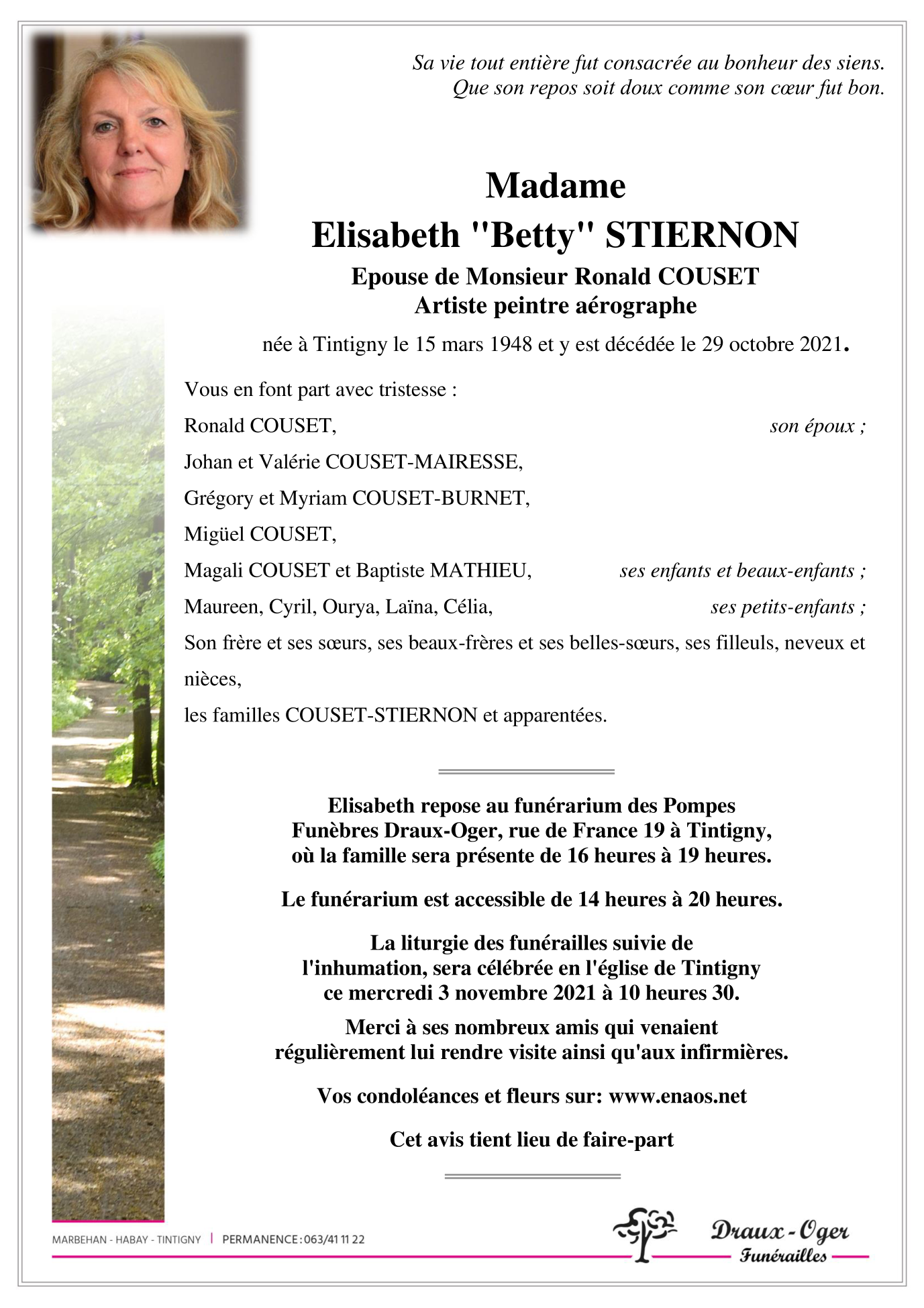 Décédée à Tintigny (6730) le vendredi 29 octobre 2021 à l'âge de 73 ans