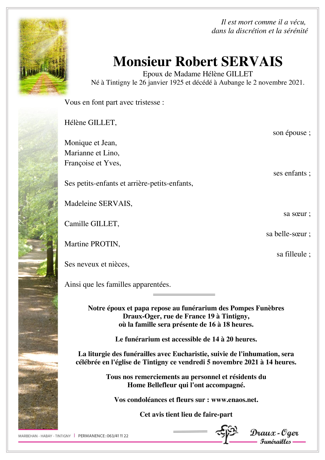Décédé à Aubange (6790) le mardi 2 novembre 2021 à l'âge de 96 ans