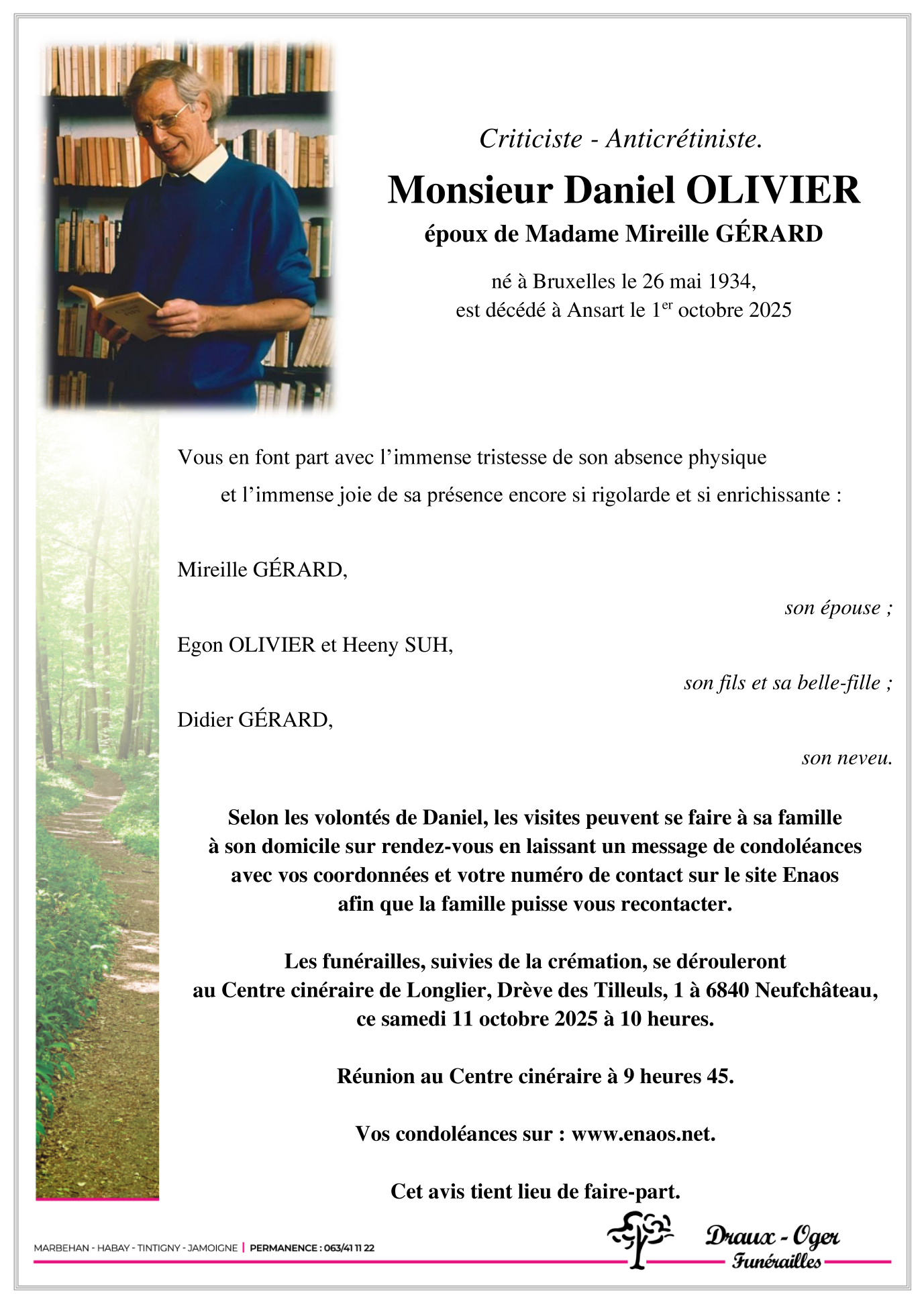 Décédé à Ansart (6730) le mercredi 1 octobre 2025 à l'âge de 91 ans