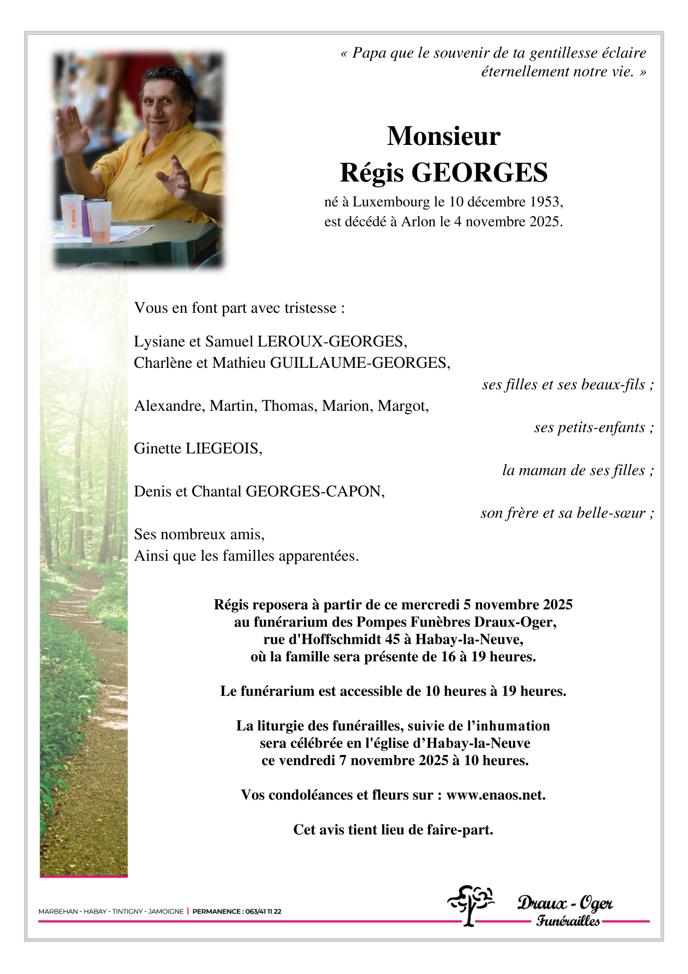 Décédé à Arlon (6700) le mardi 4 novembre 2025 à l'âge de 71 ans