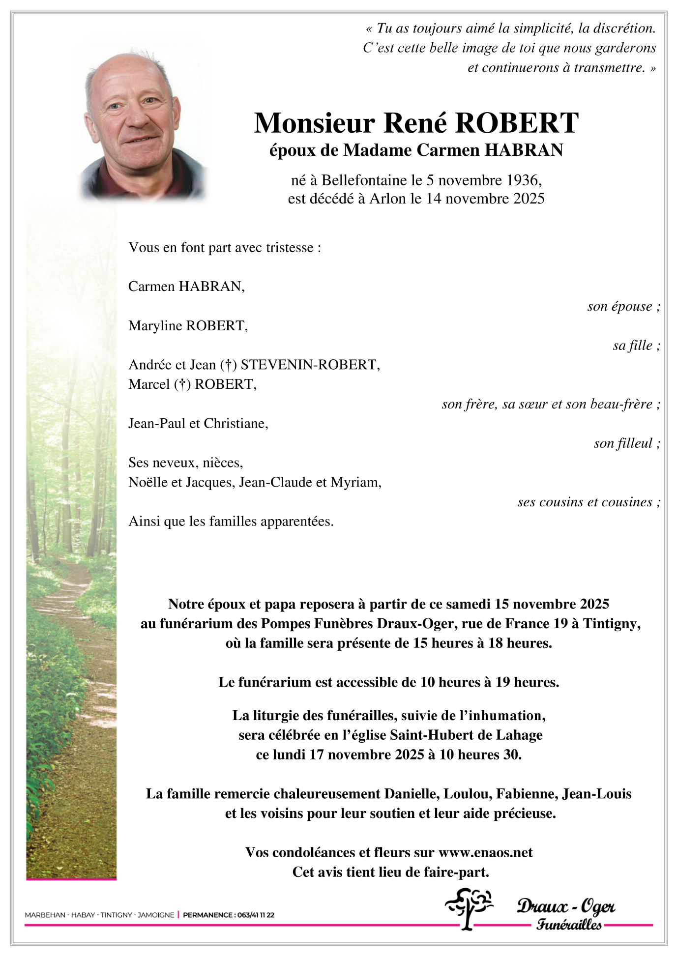 Décédé à Arlon (6700) le vendredi 14 novembre 2025 à l'âge de 89 ans