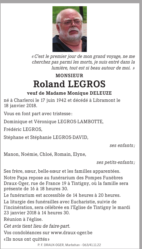 Veuf de Madame Monique DELEUZE