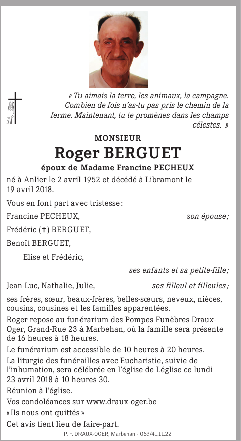 Décédé à Libramont (6800) le jeudi 19 avril 2018 à l'âge de 66 ans