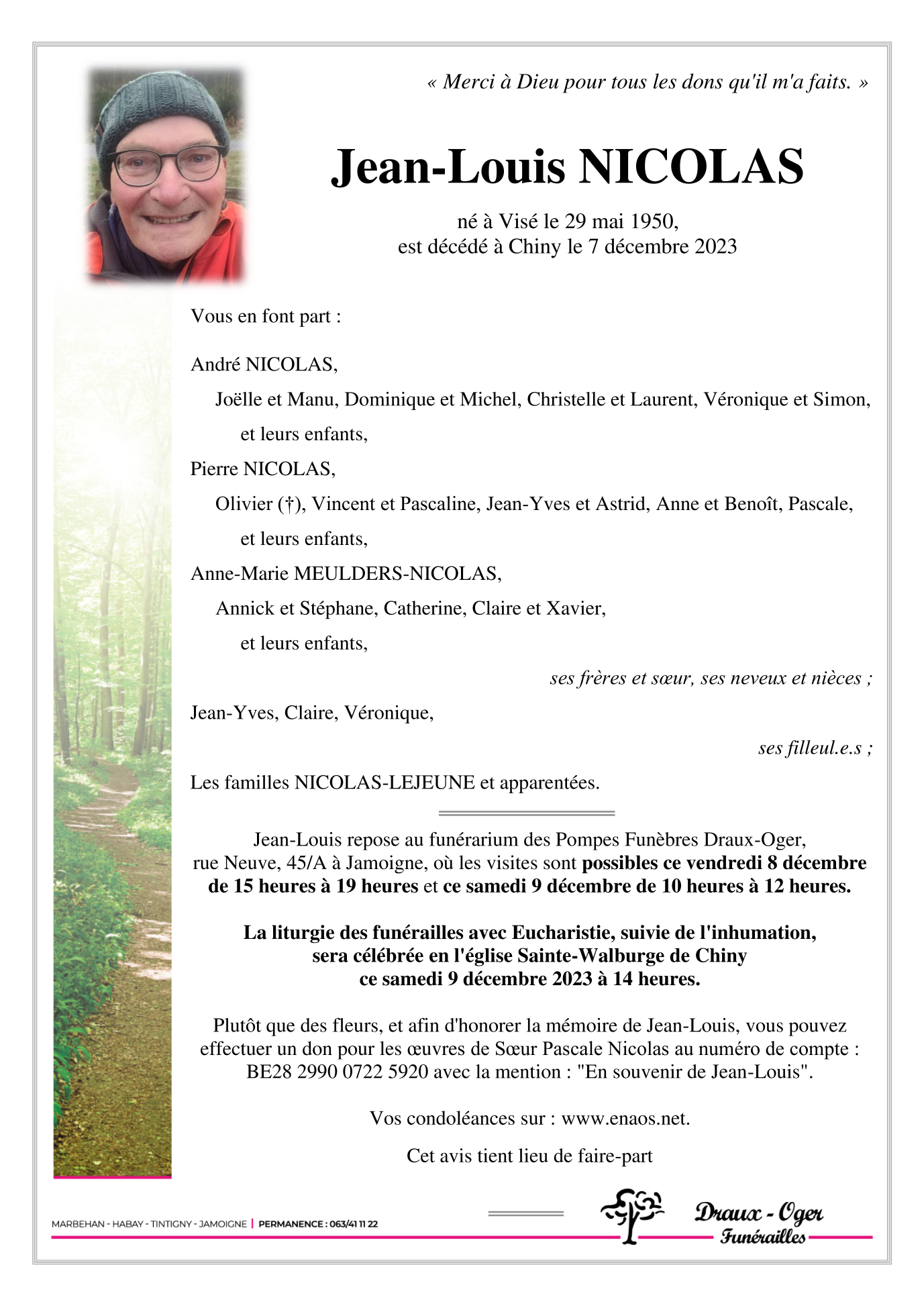 Décédé à Chiny (6810) le jeudi 7 décembre 2023 à l'âge de 73 ans
