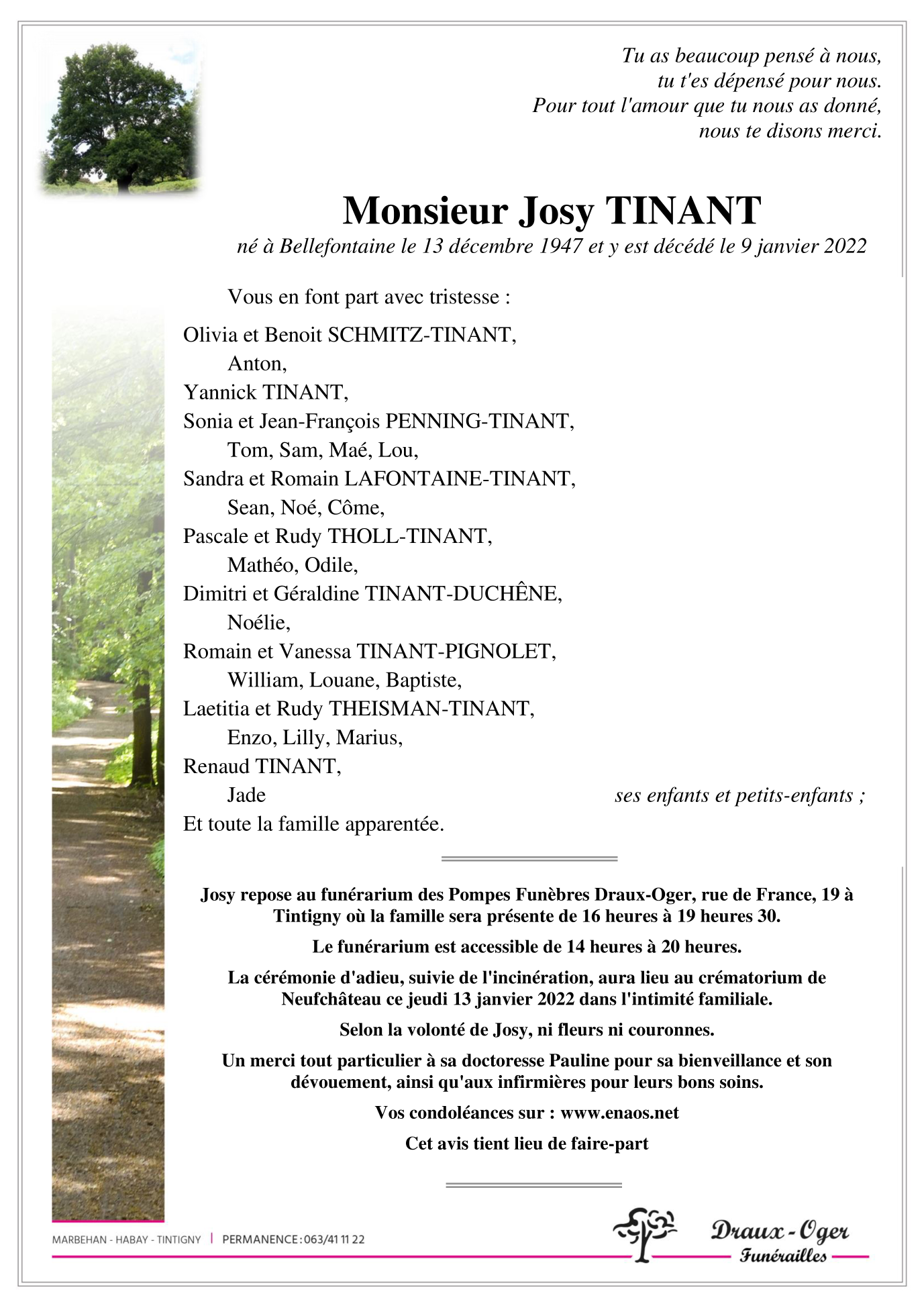 Décédé à Bellefontaine (Lux.) (6730) le dimanche 9 janvier 2022 à l'âge de 74 ans