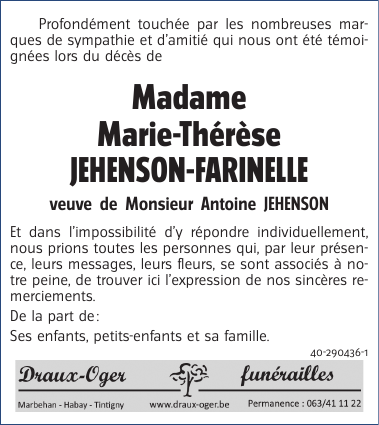 Madame Marie-Thérèse JEHENSON-FARINELLE
