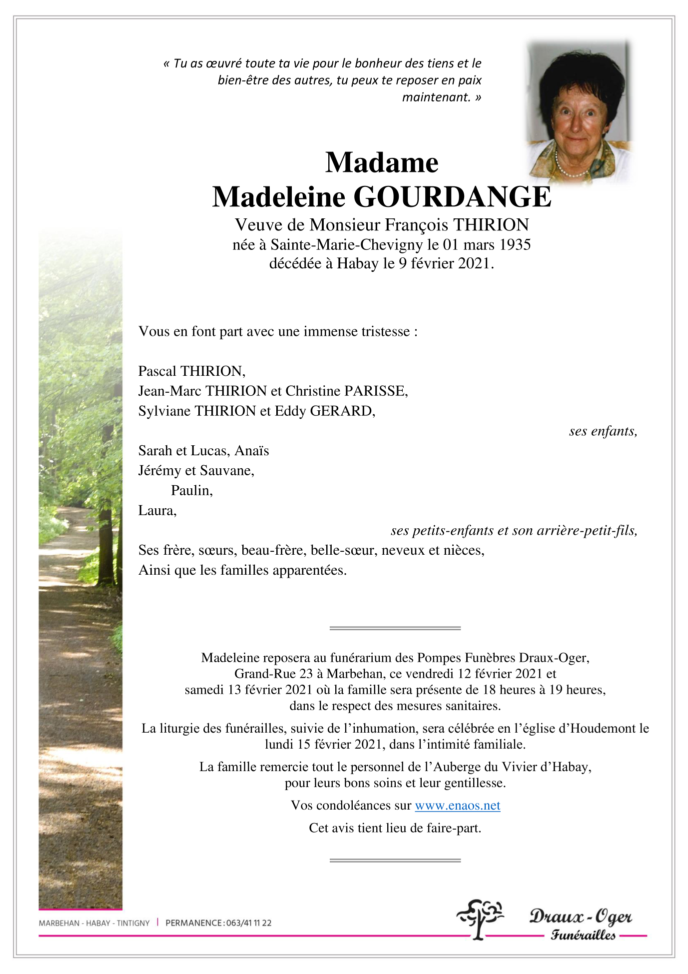 Décédée à Habay (6720) le mardi 9 février 2021 à l'âge de 85 ans