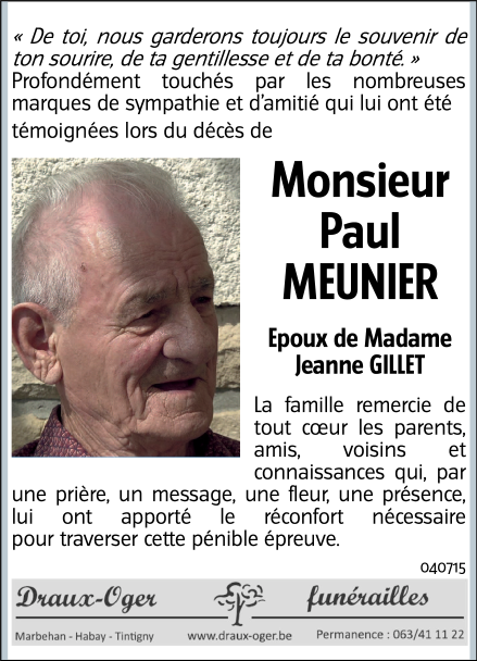 Né à Cherain (6673) le mardi 17 octobre 1933