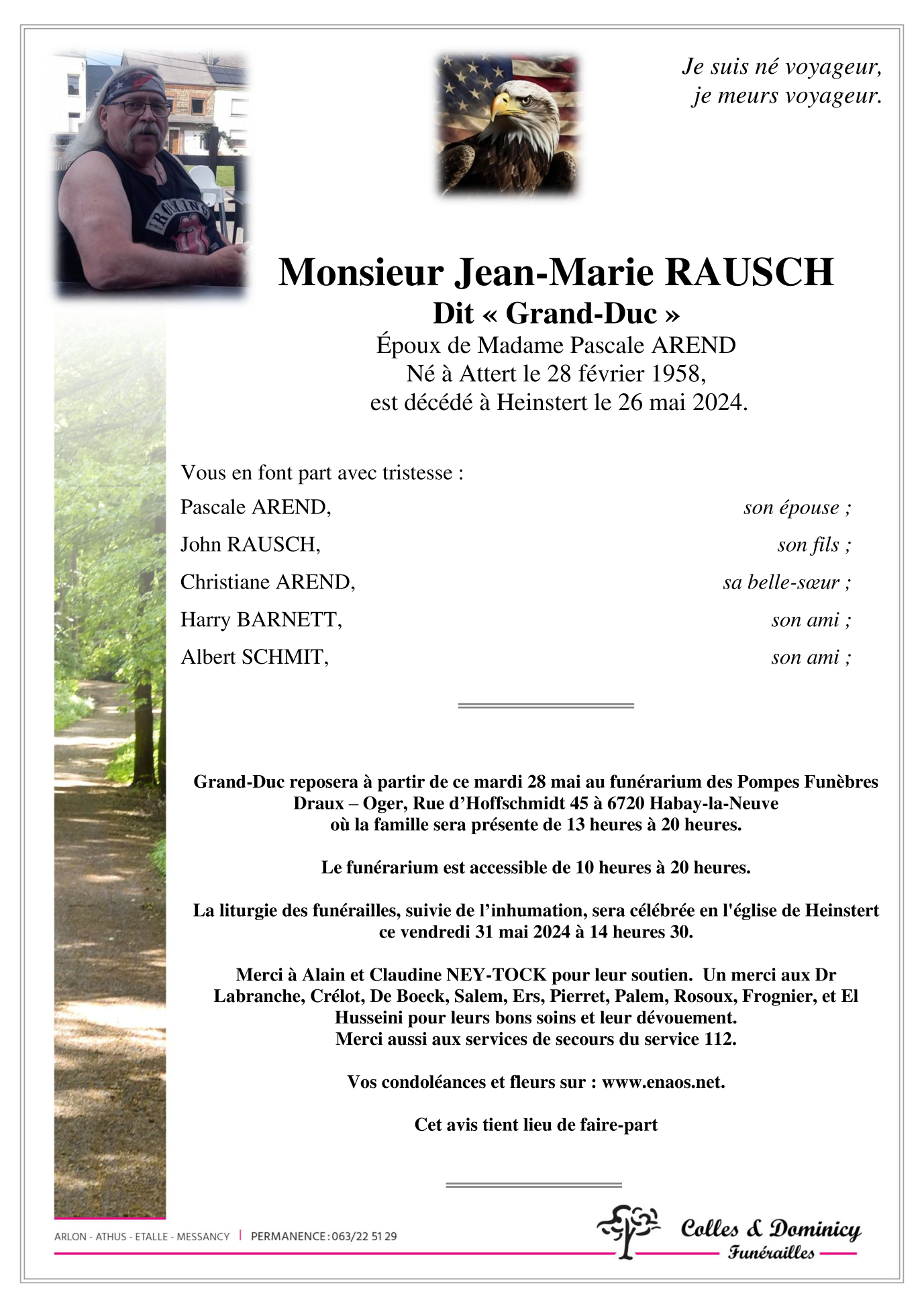 Décédé à Attert (6717) le dimanche 26 mai 2024 à l'âge de 66 ans