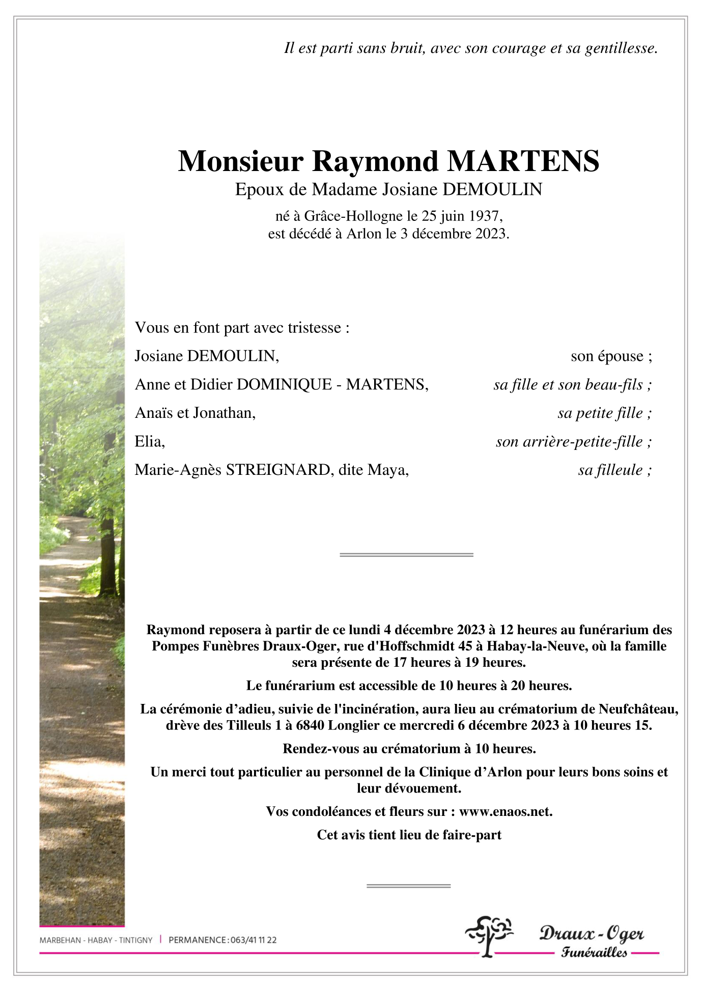 Décédé à Arlon (6700) le dimanche 3 décembre 2023 à l'âge de 86 ans