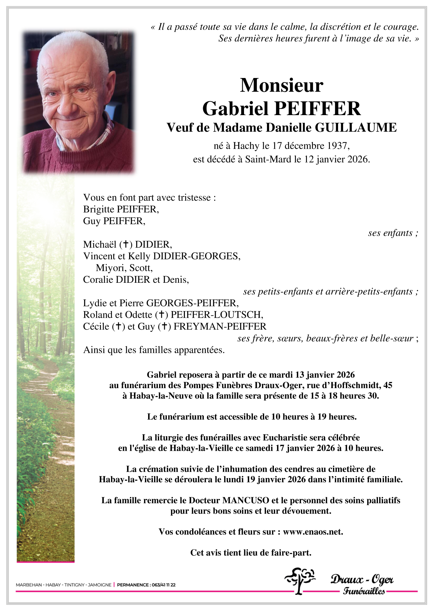 Veuf de Madame Danielle GUILLAUME