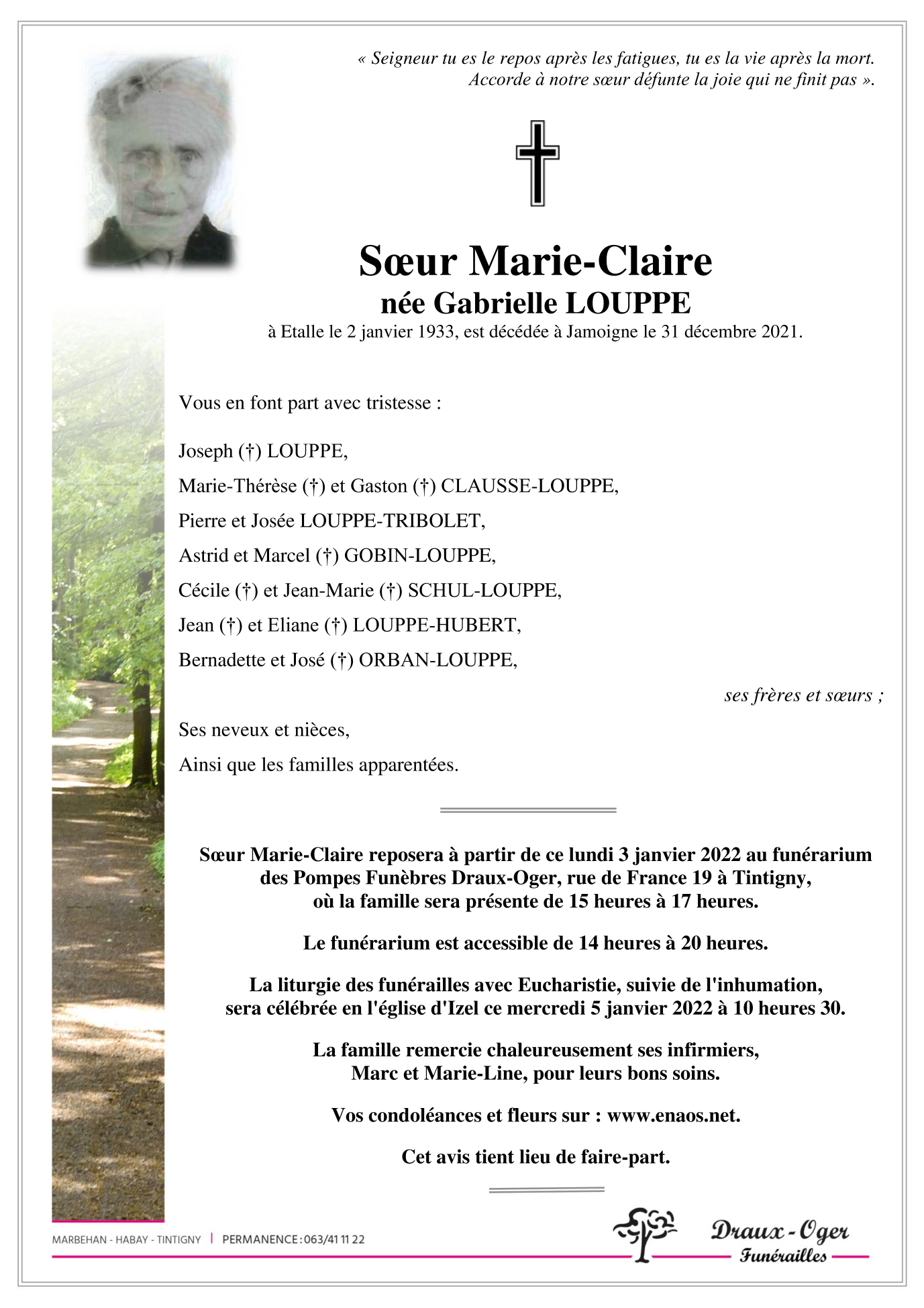 Soeur Marie-Claire née Gabrielle LOUPPE
