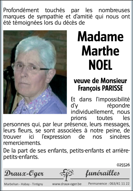 Décédée à Neufchâteau (6840) le mercredi 23 mars 2022 à l'âge de 81 ans
