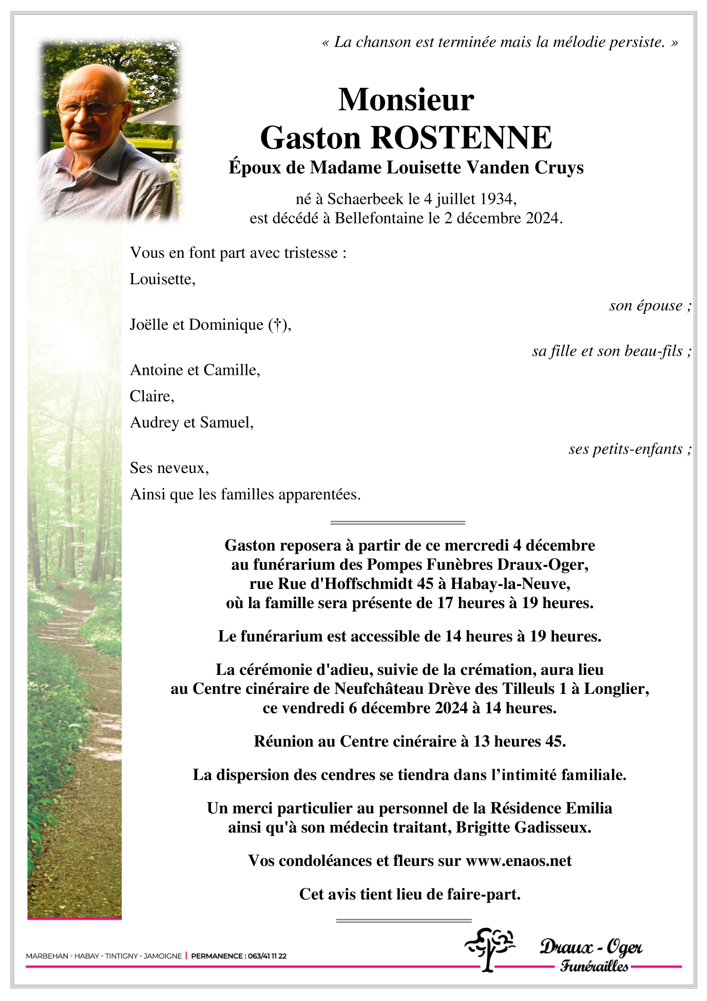 Décédé à Bellefontaine (Lux.) (6730) le lundi 2 décembre 2024 à l'âge de 90 ans