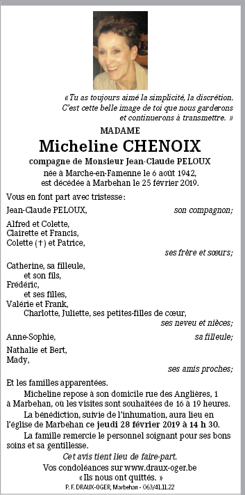 Née à Marche-en-Famenne (6900) le jeudi 6 août 1942
