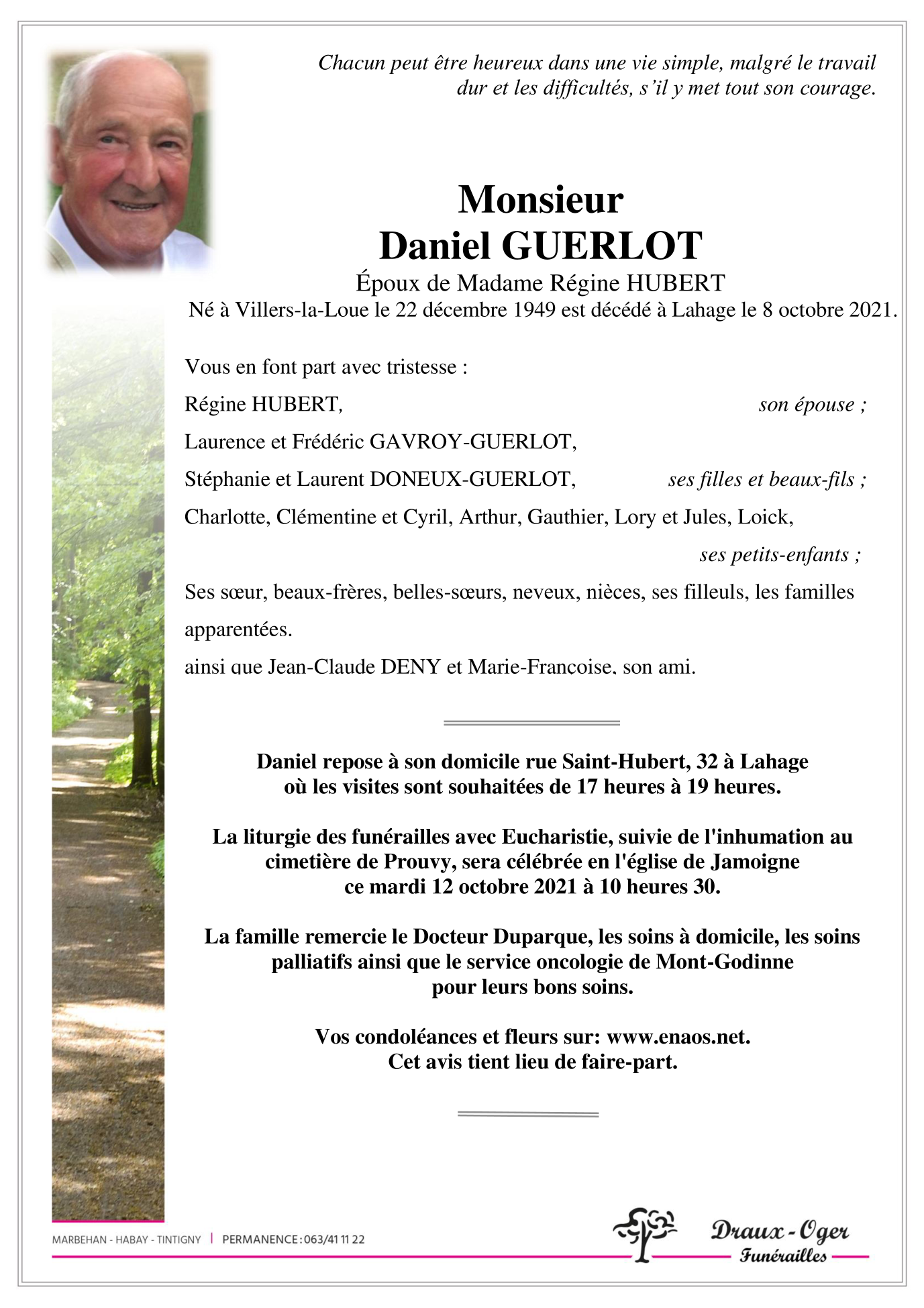 Né à Villers-la-Loue (6769) le jeudi 22 décembre 1949