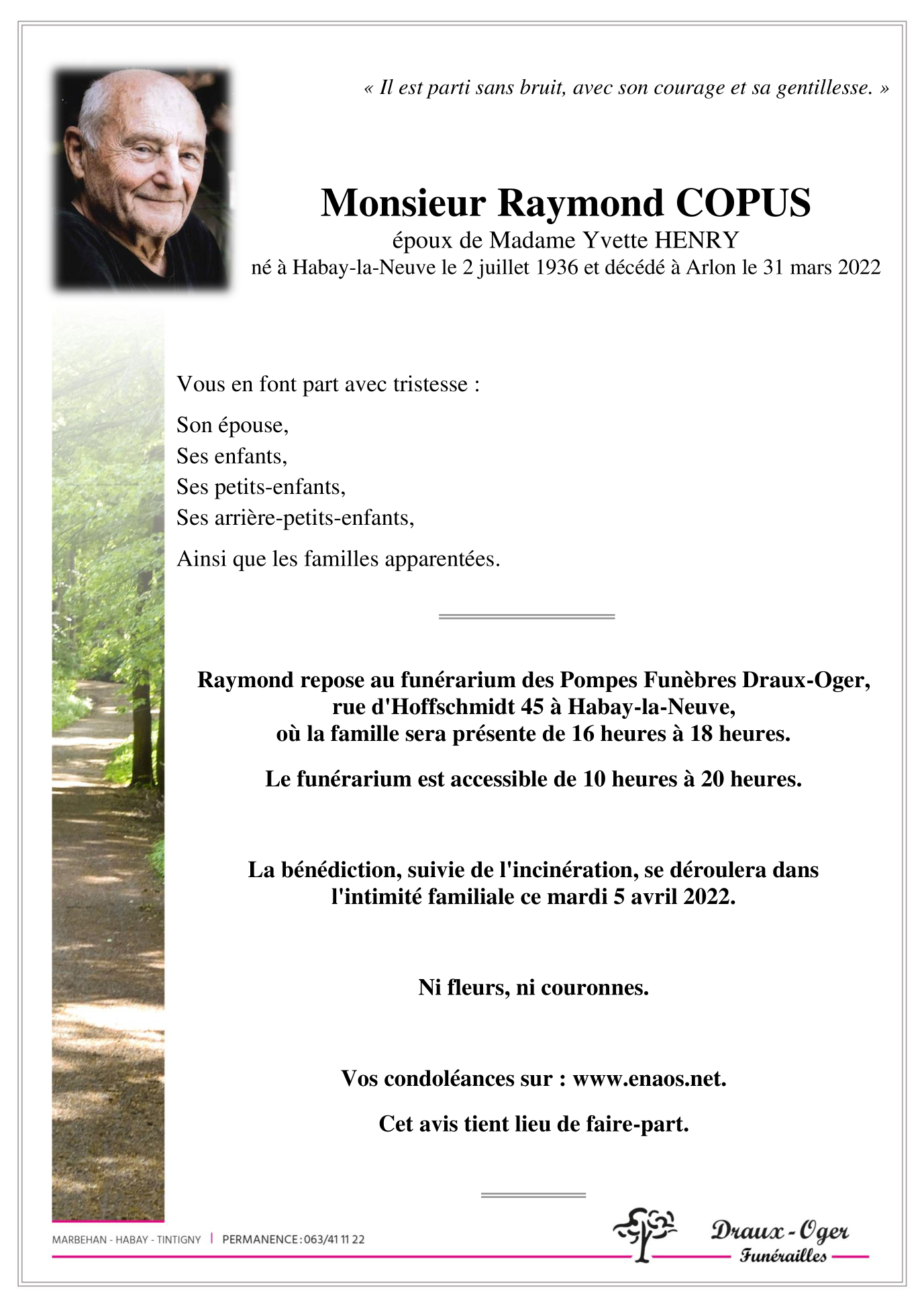 Décédé à Arlon (6700) le jeudi 31 mars 2022 à l'âge de 85 ans