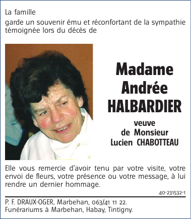 Décédée à Rossignol (6730) le jeudi 17 décembre 2015 à l'âge de 90 ans