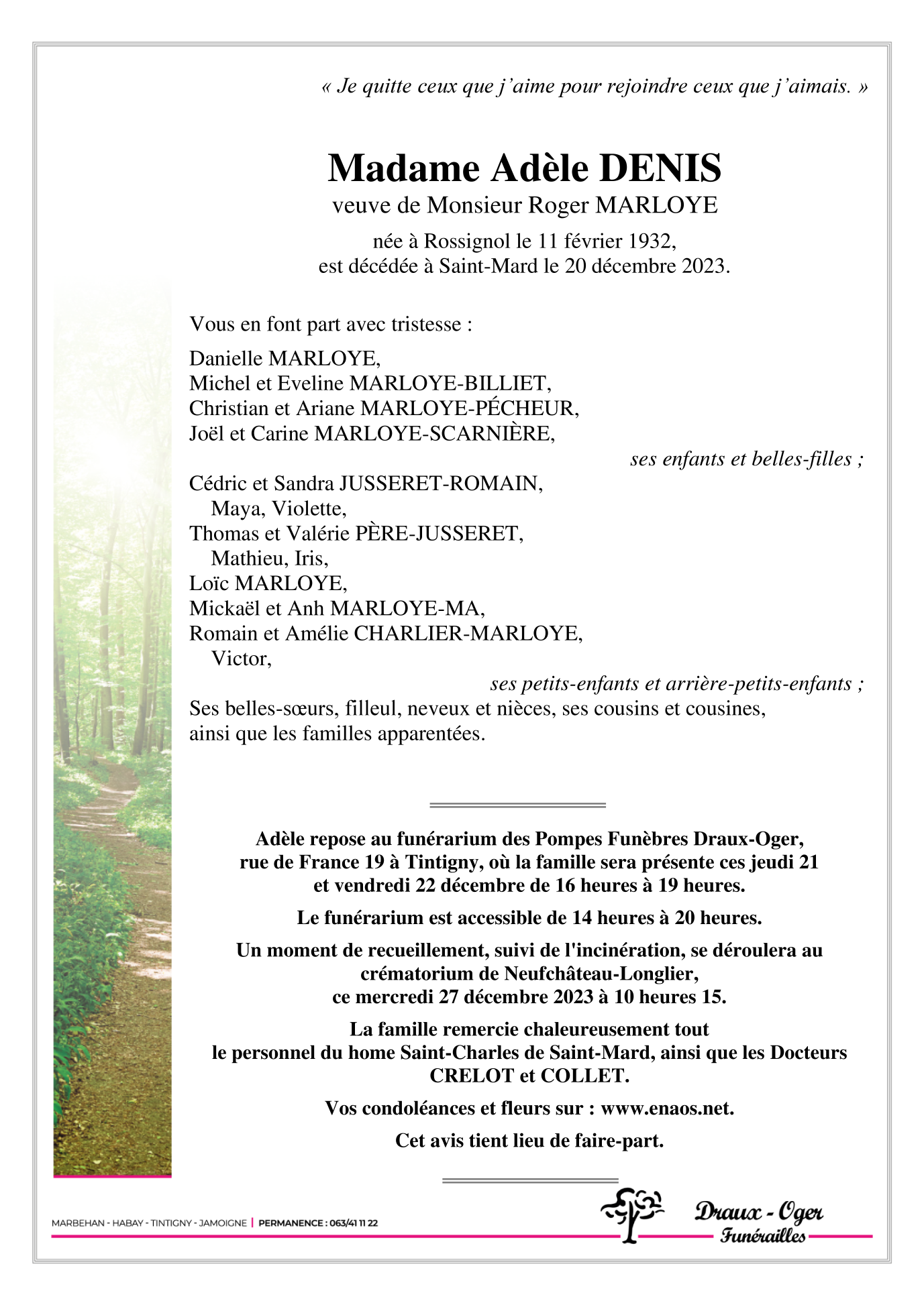 Décédée à Saint-Mard (6762) le mercredi 20 décembre 2023 à l'âge de 91 ans