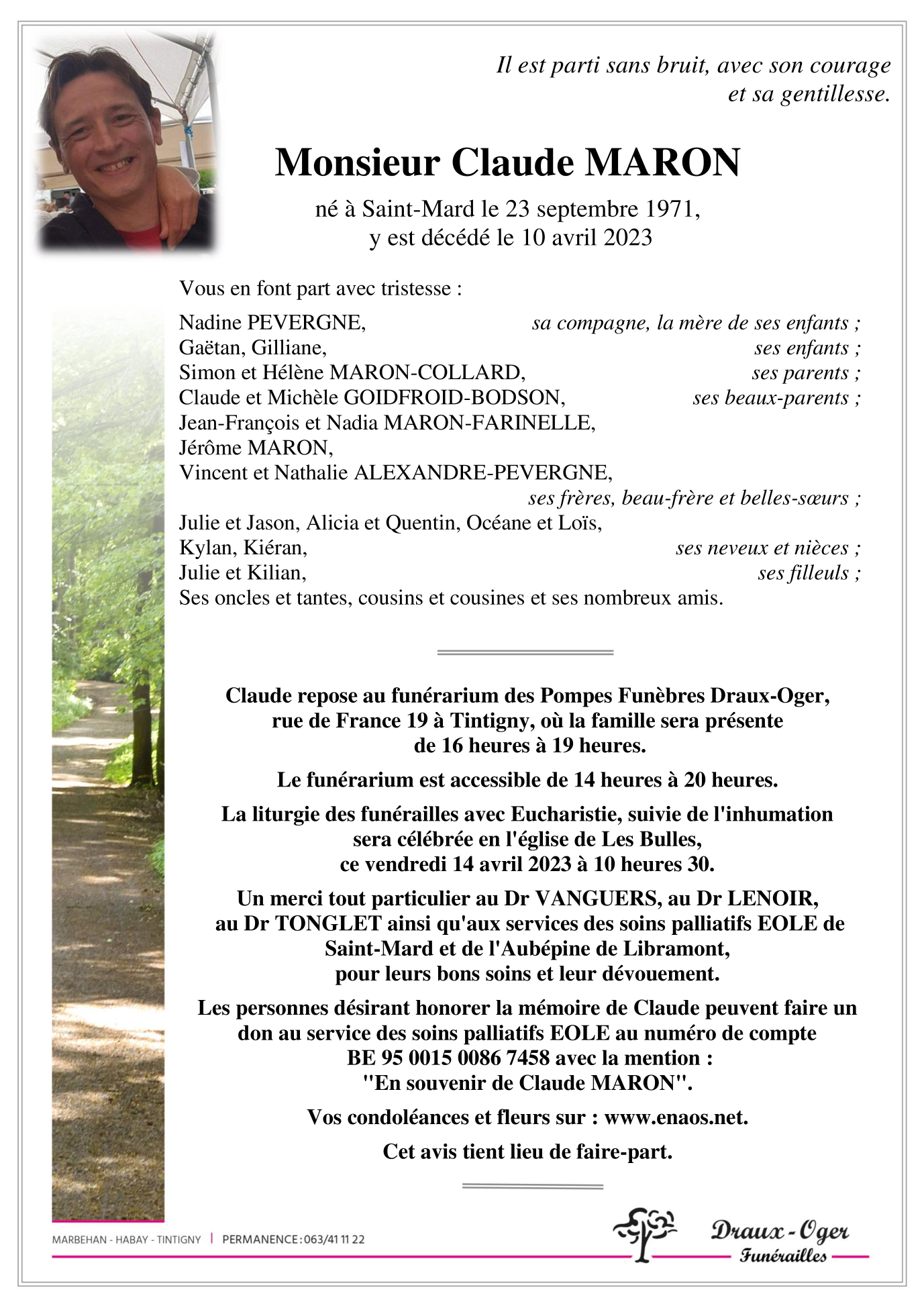 Décédé à Saint-Mard (6762) le lundi 10 avril 2023 à l'âge de 51 ans