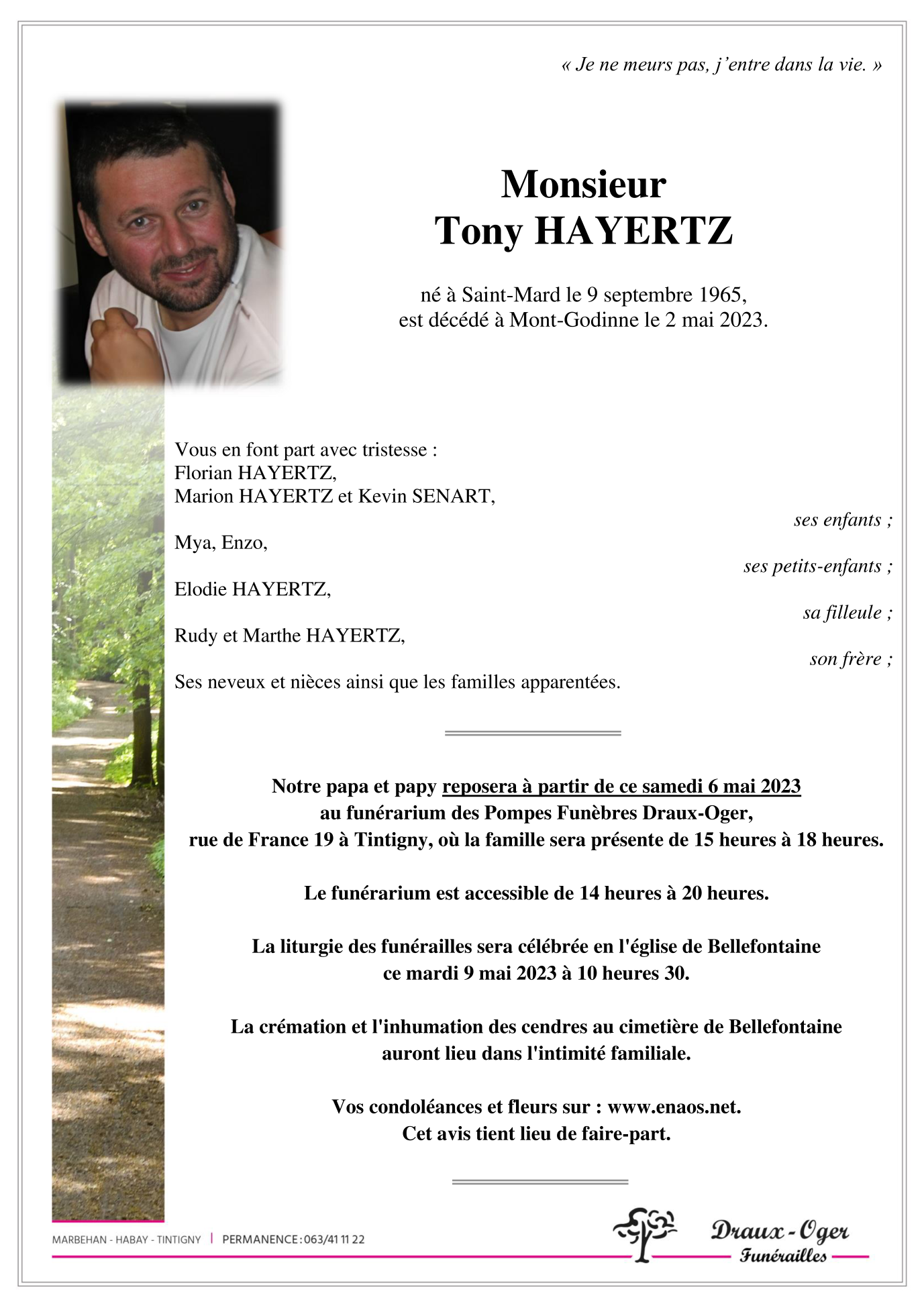 Né à Saint-Mard (6762) le jeudi 9 septembre 1965