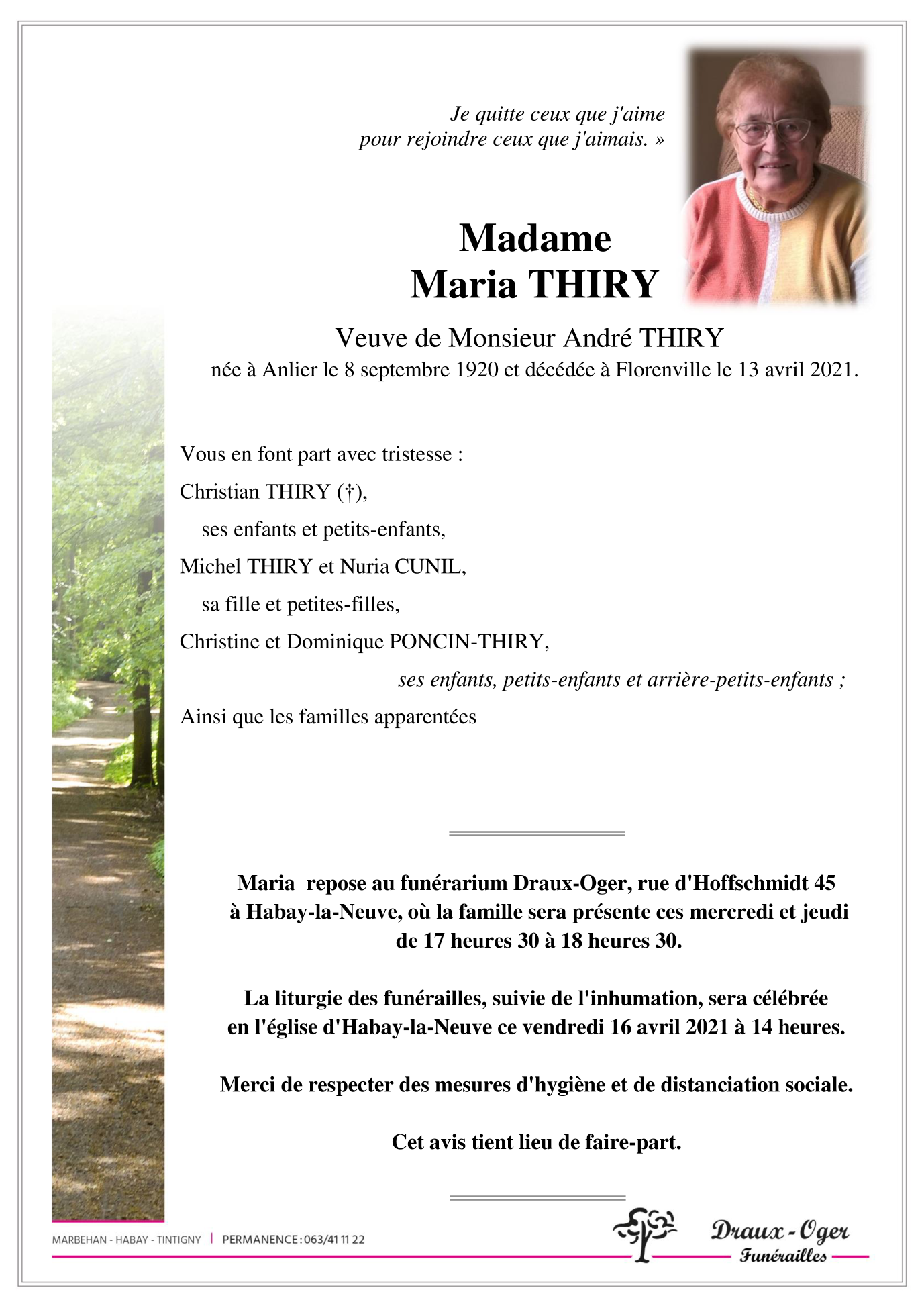 Veuve de Monsieur André THIRY