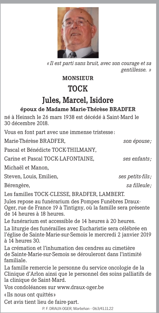 Décédé à Saint-Mard (6762) le dimanche 30 décembre 2018 à l'âge de 80 ans
