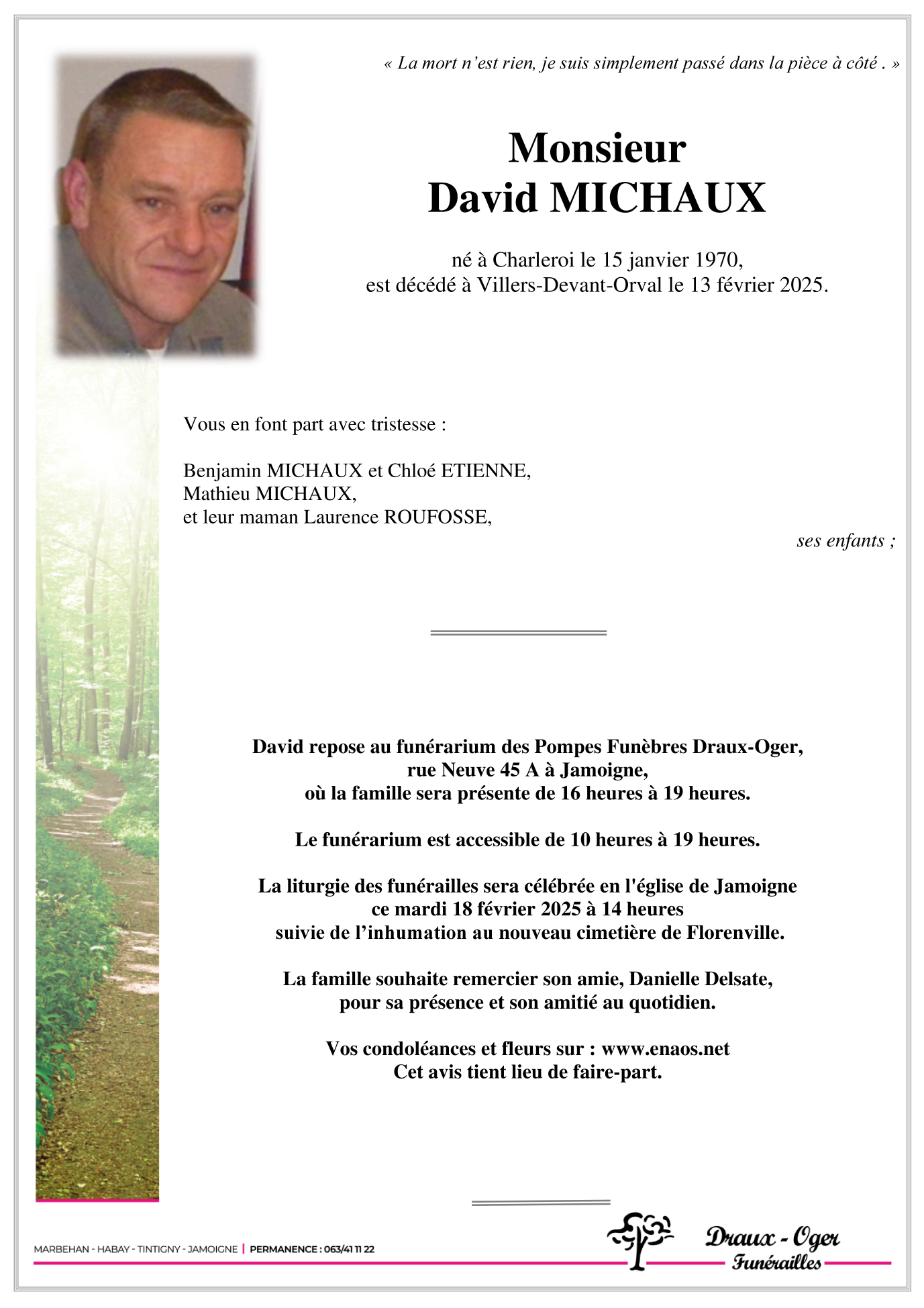 Décédé à Villers-Devant-Orval (6823) le jeudi 13 février 2025 à l'âge de 55 ans