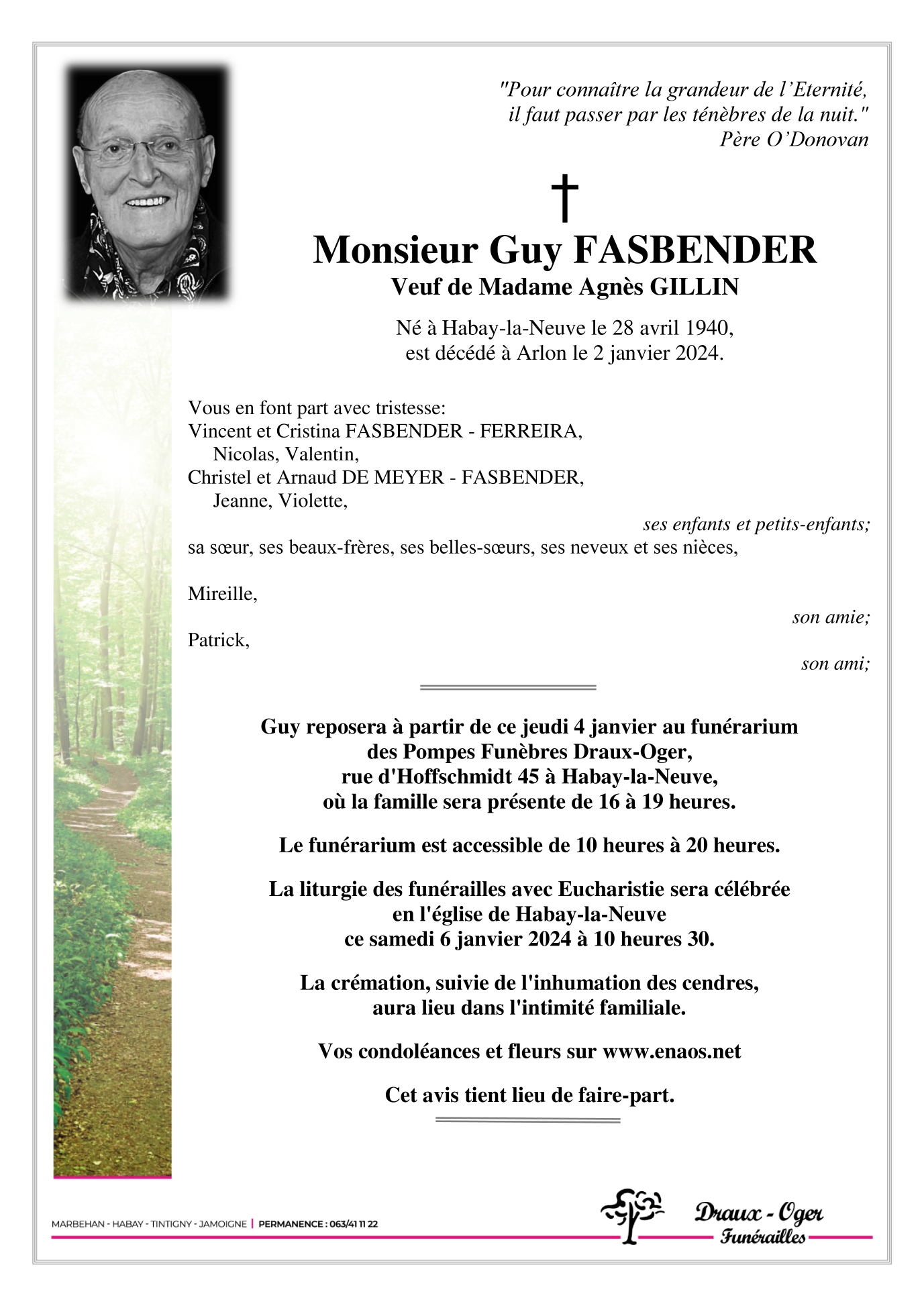 Décédé à Arlon (6700) le mardi 2 janvier 2024 à l'âge de 83 ans