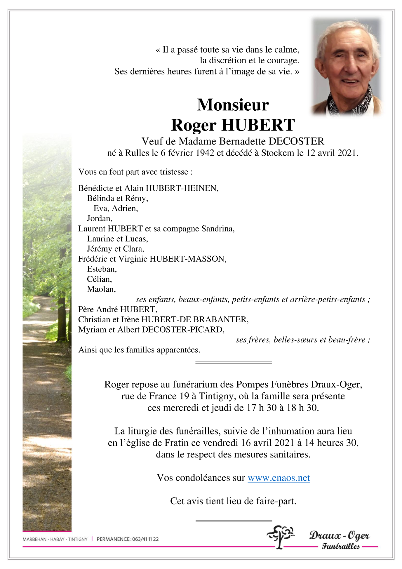 Veuf de Madame Bernadette DECOSTER