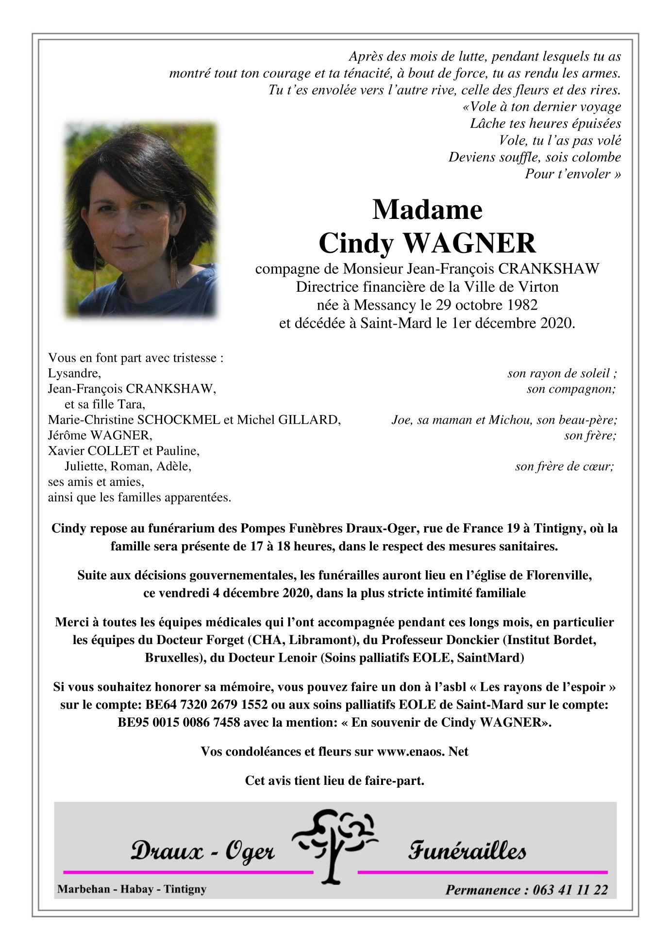 Décédée à Saint-Mard (6762) le mardi 1 décembre 2020 à l'âge de 38 ans