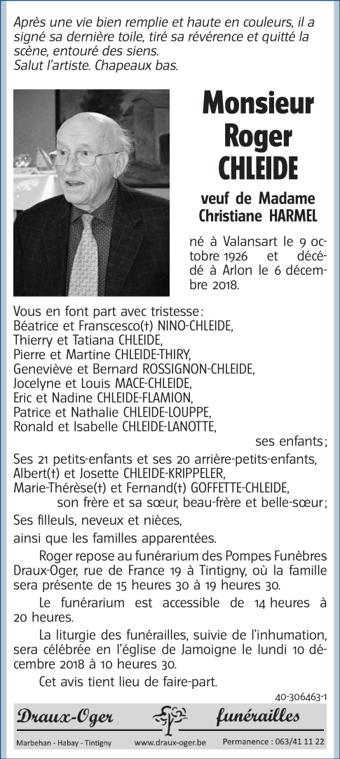 Décédé à Arlon (6700) le jeudi 6 décembre 2018 à l'âge de 92 ans