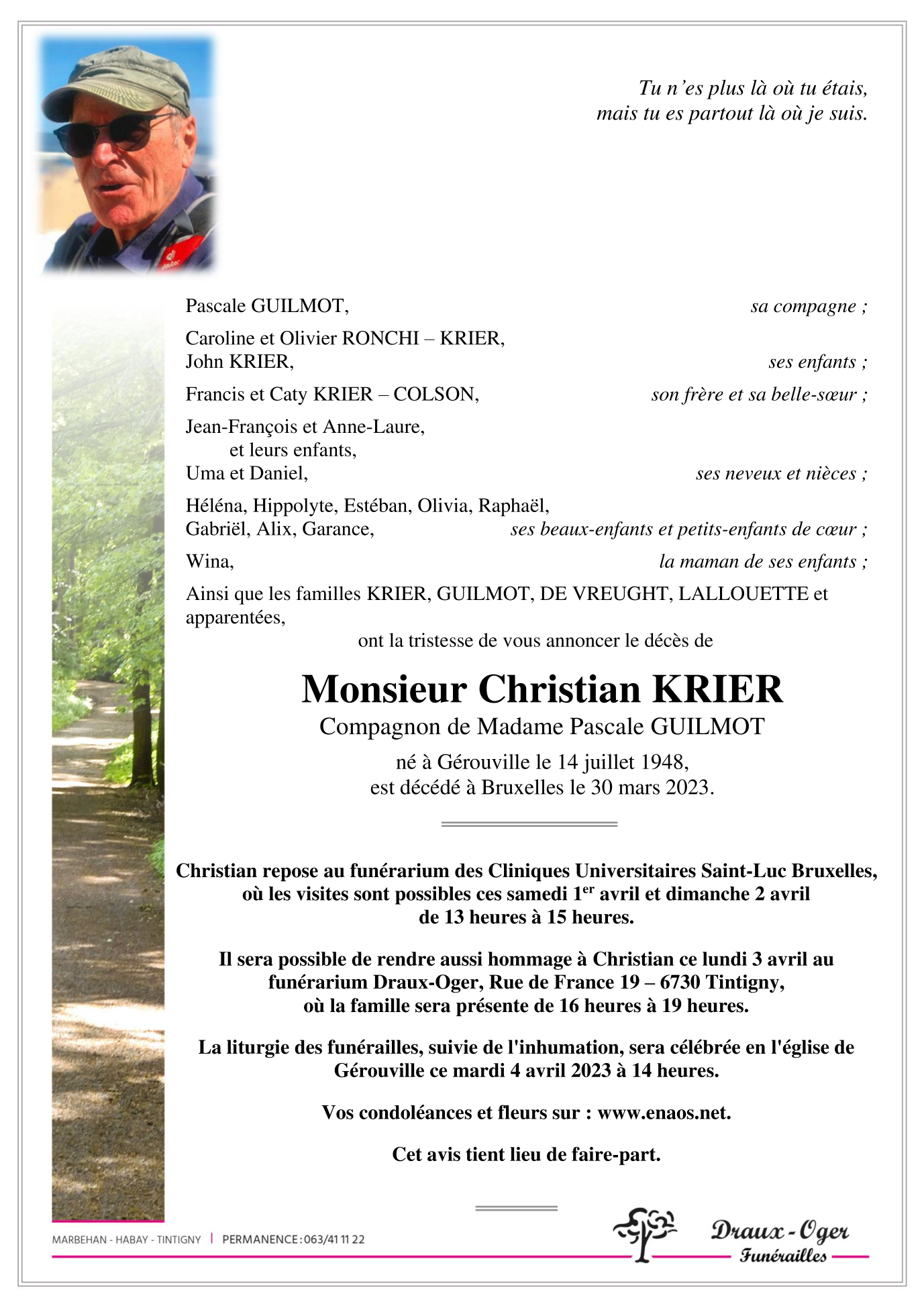 Décédé à Woluwe-Saint-Lambert (1200) le jeudi 30 mars 2023 à l'âge de 74 ans