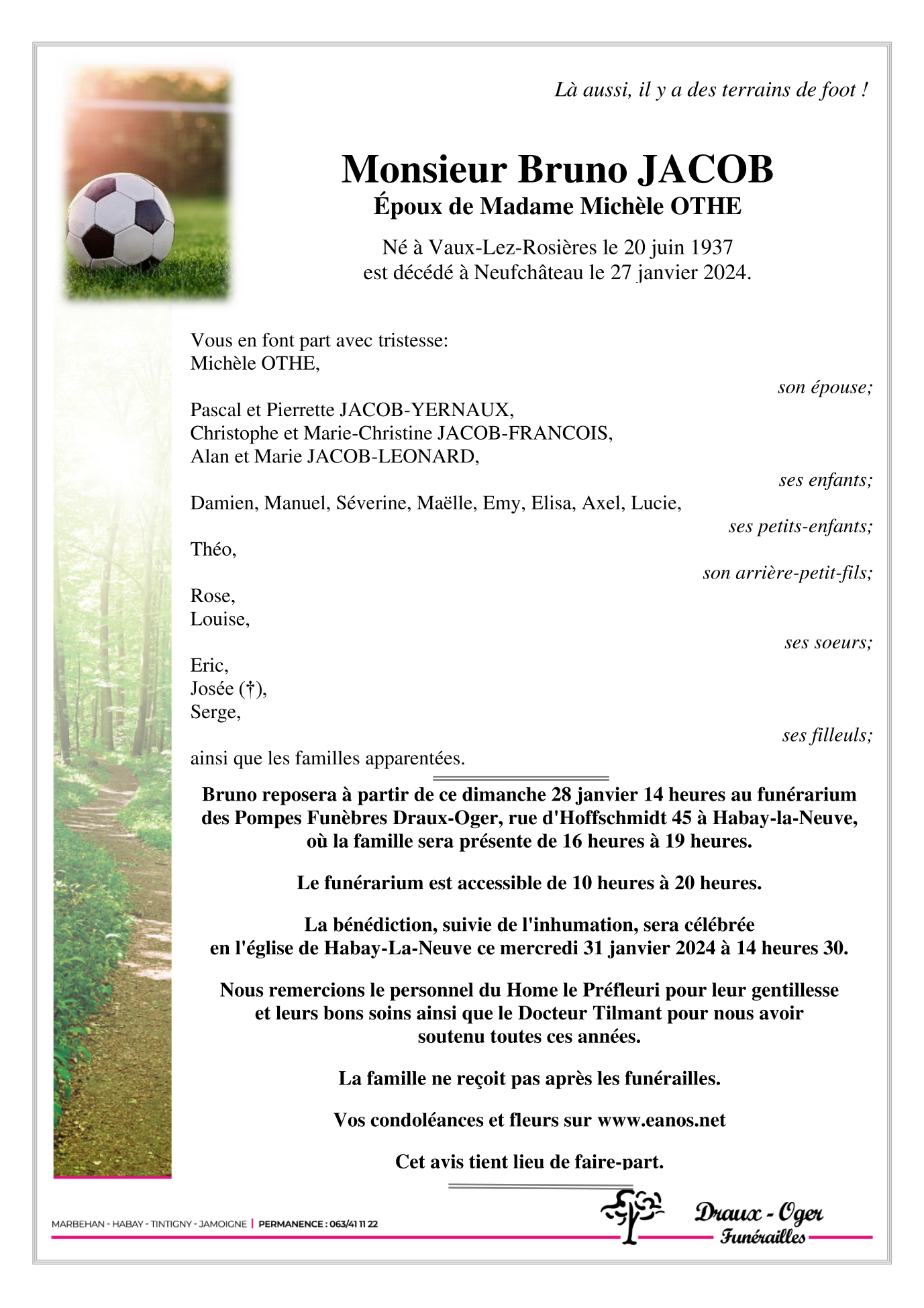 Décédé à Neufchâteau (6840) le samedi 27 janvier 2024 à l'âge de 86 ans