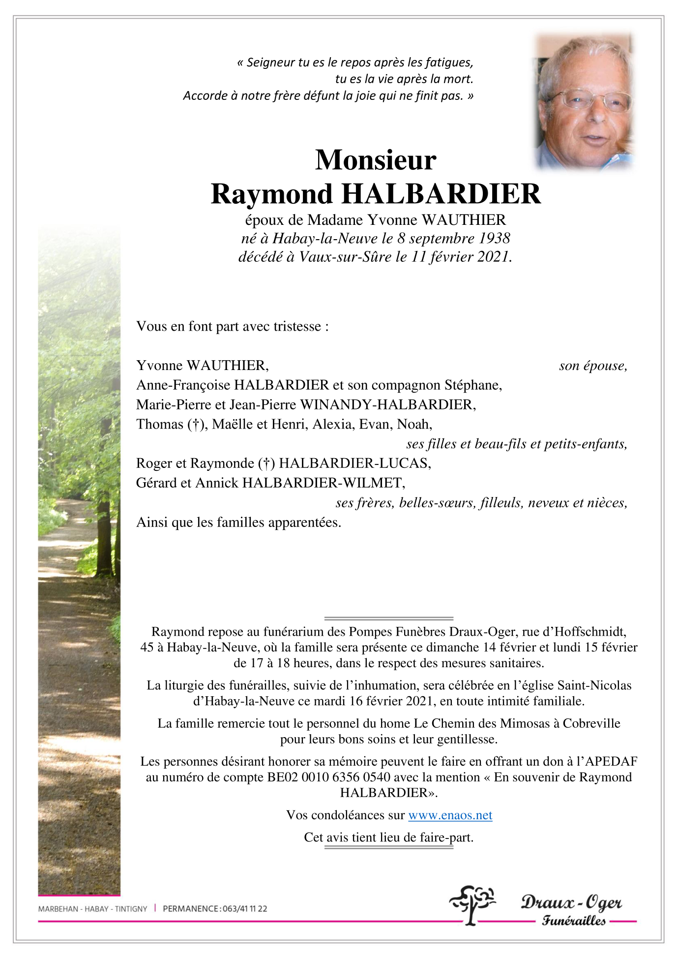 Décédé à Vaux-sur-Sure (6640) le jeudi 11 février 2021 à l'âge de 82 ans