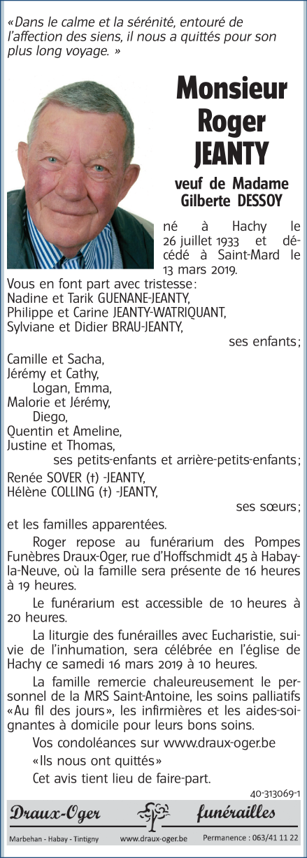 Décédé à Virton (6760) le mercredi 13 mars 2019 à l'âge de 85 ans