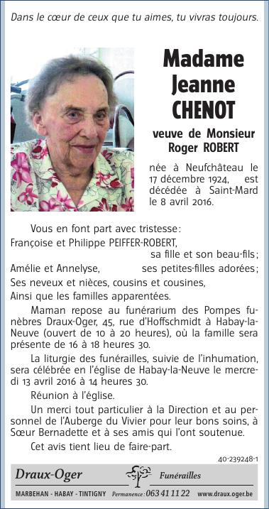 Madame Jeanne CHENOT