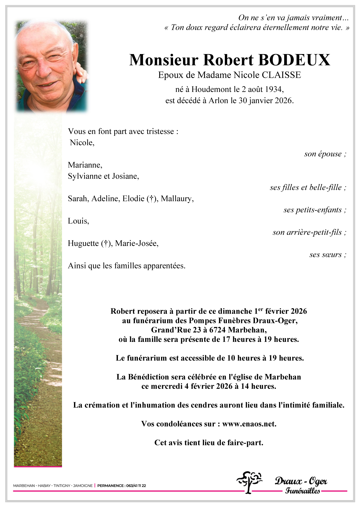 Décédé à Arlon (6700) le vendredi 30 janvier 2026 à l'âge de 91 ans