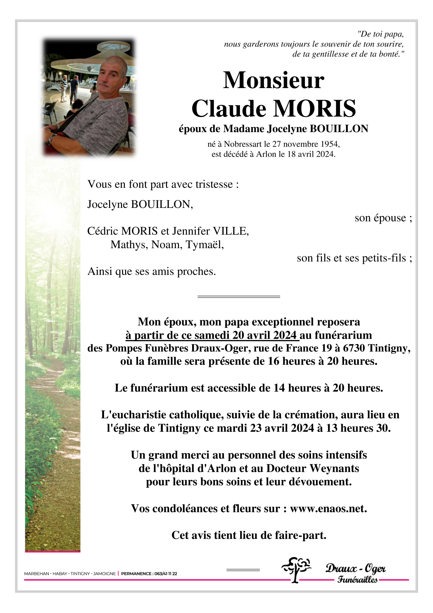 Décédé à Arlon (6700) le jeudi 18 avril 2024 à l'âge de 69 ans