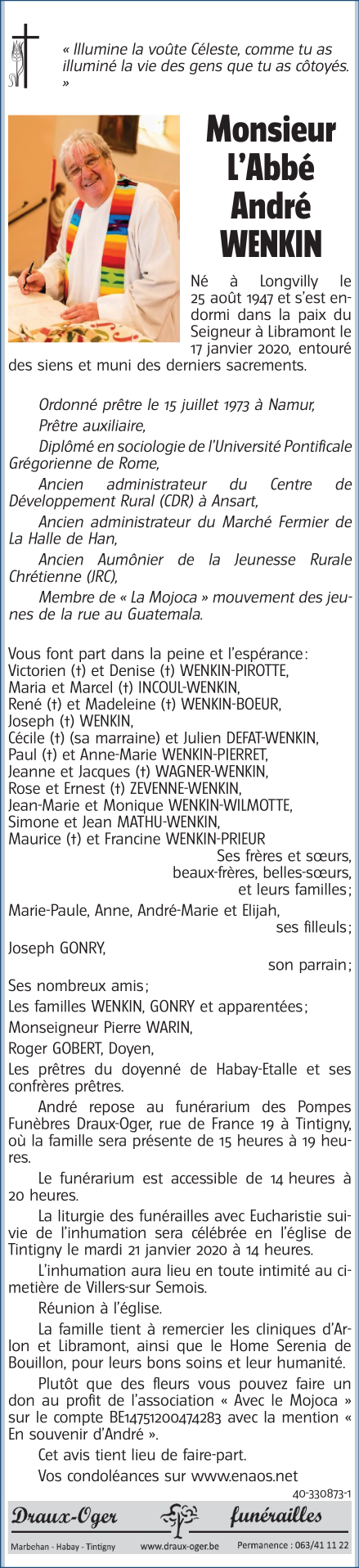 Décédé à Libramont-Chevigny (6800) le vendredi 17 janvier 2020 à l'âge de 72 ans