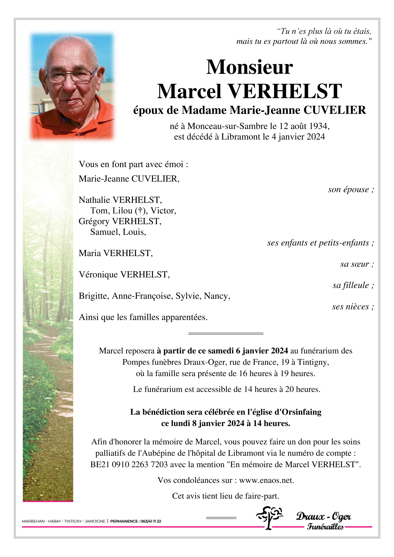 Décédé à Libramont-Chevigny (6800) le jeudi 4 janvier 2024 à l'âge de 89 ans