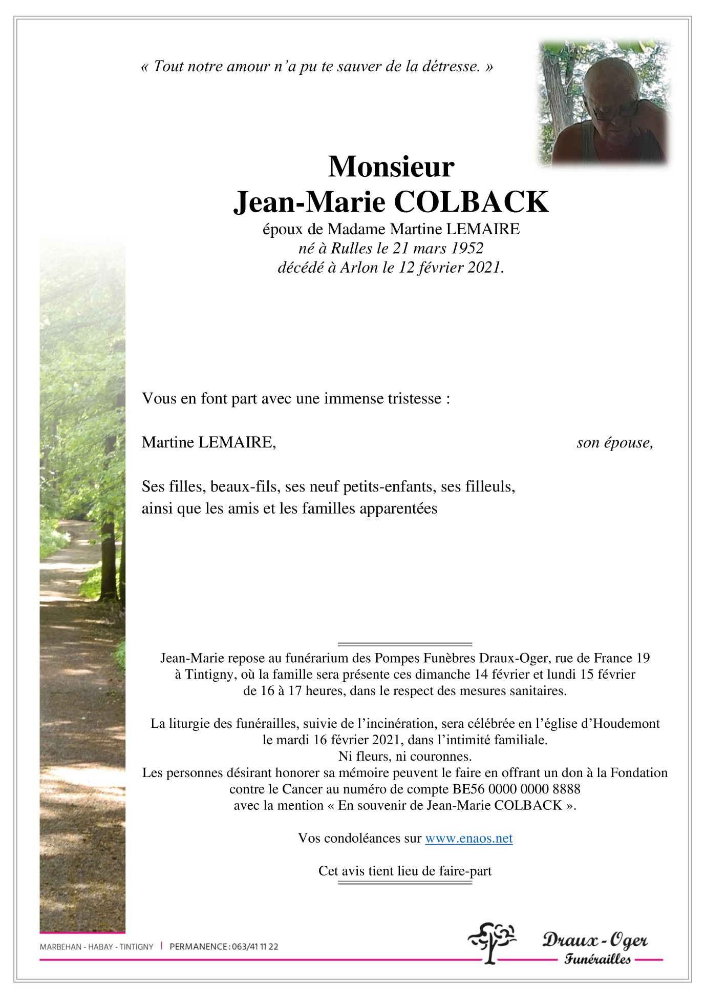 Décédé à Arlon (6700) le vendredi 12 février 2021 à l'âge de 68 ans