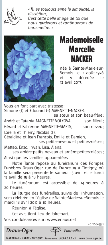 le mercredi 12 avril 2017 à l'âge de 88 ans